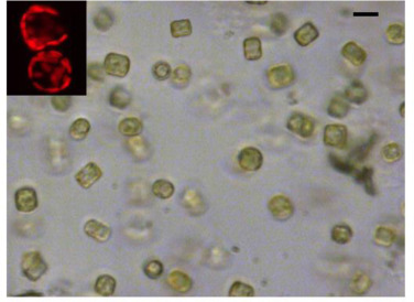 Owing to its characteristic shape and size, this green/brown algae is beneficial type of diatom.